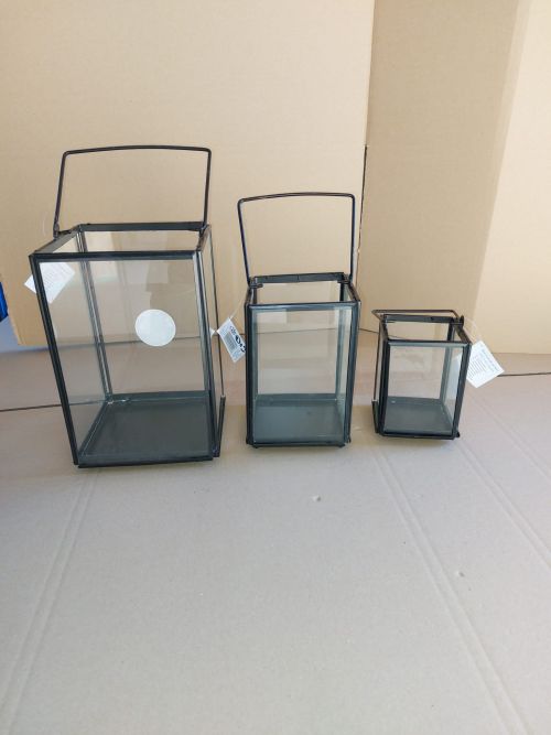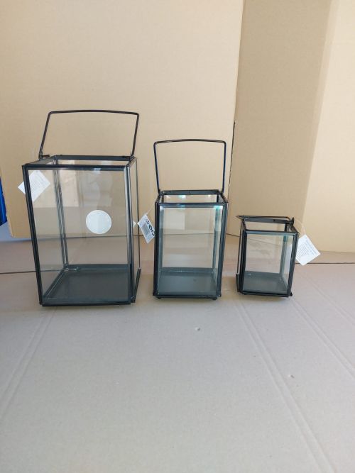 3er Set Gartenlaterne, Windlicht schwarz Metall/Glas Deko, A-Ware