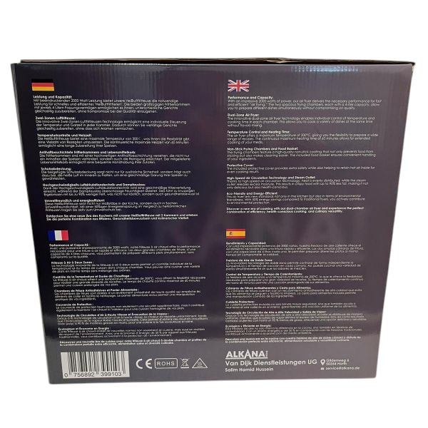 ALKANA Doppel-Heißluftfritteuse 8L – Zwei Fächer für die ganze Familie