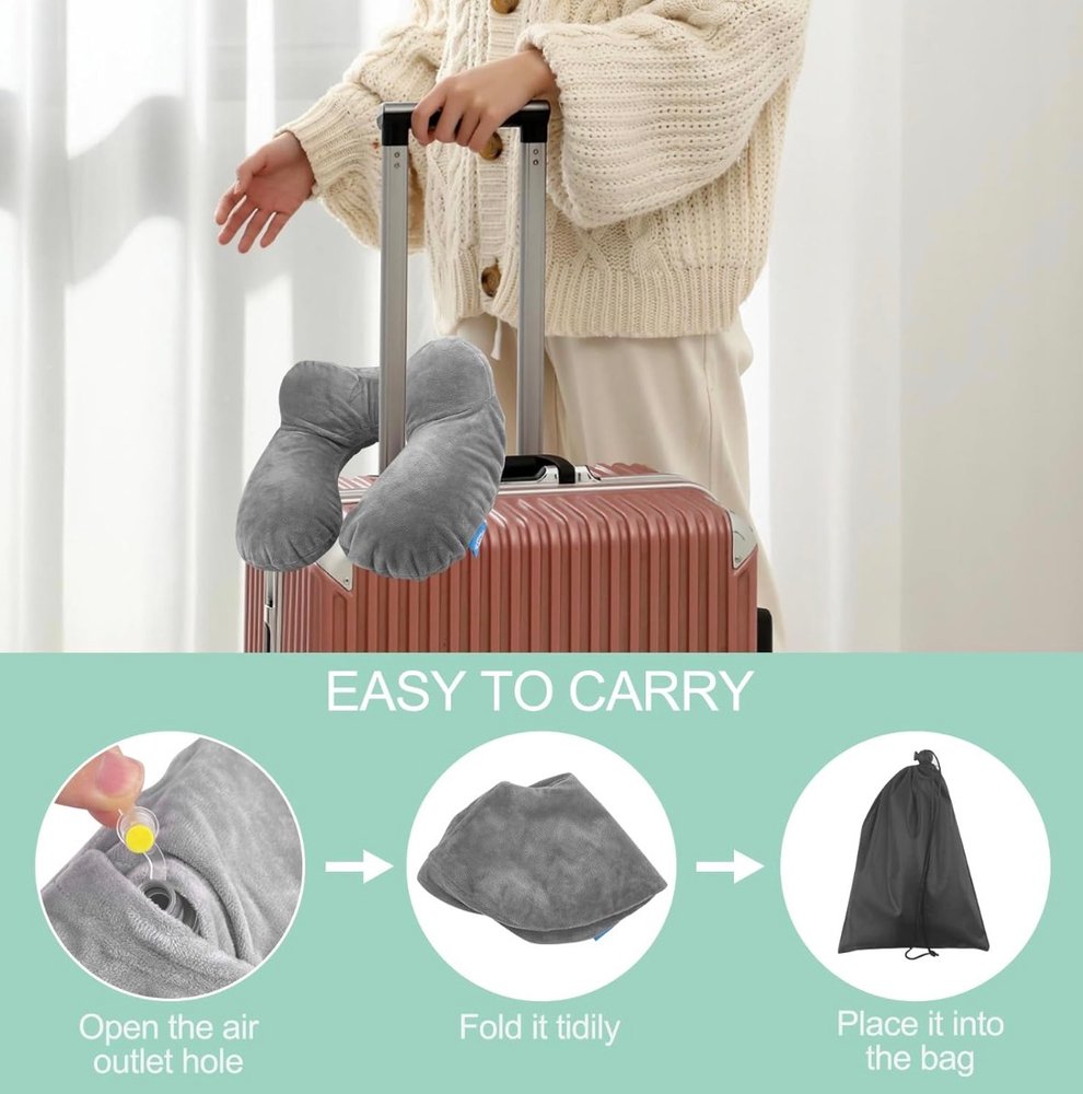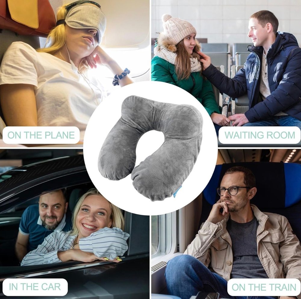 Aufblasbares Nackenkissen / Reisekissen Komfort überall – im Flugzeug, Auto, Büro oder Zuhause!