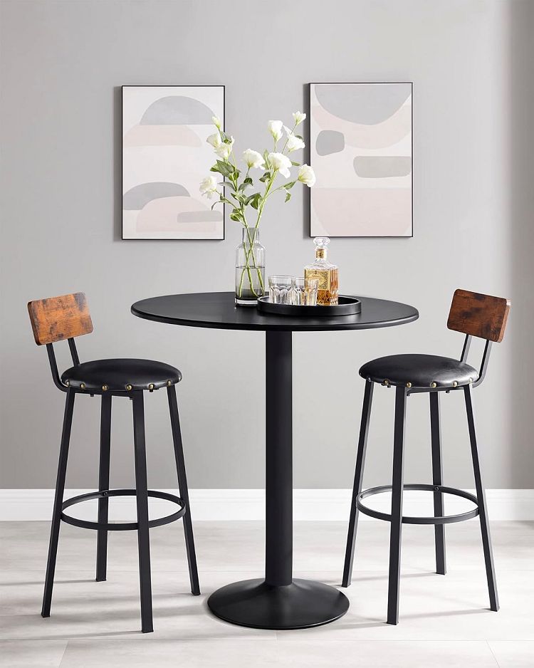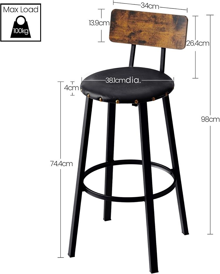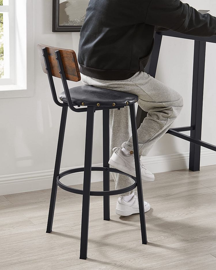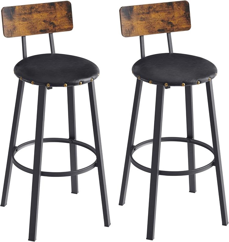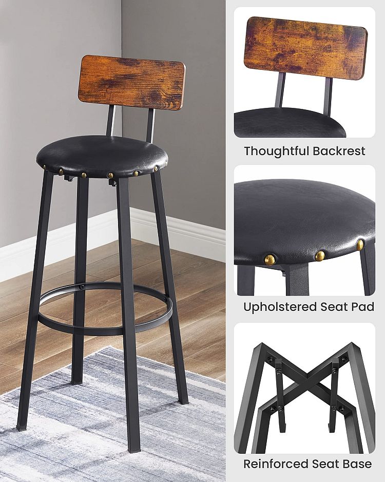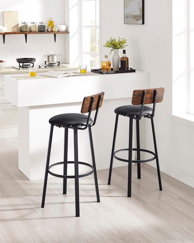 Barhocker 2er Set, Thekenhocker, Barstühle mit Rückenlehne und Fußstütze, Sitz für Küche, Esszimmer, Bistro, rustikal braun/schwarz