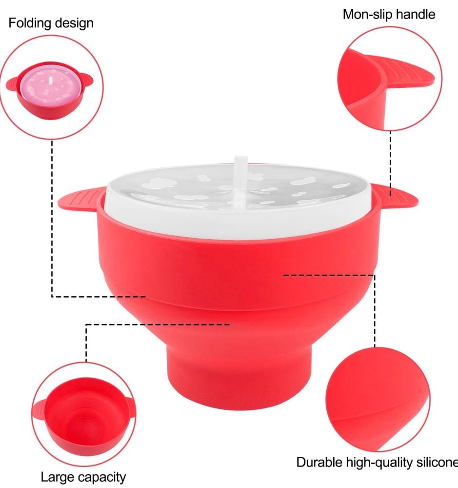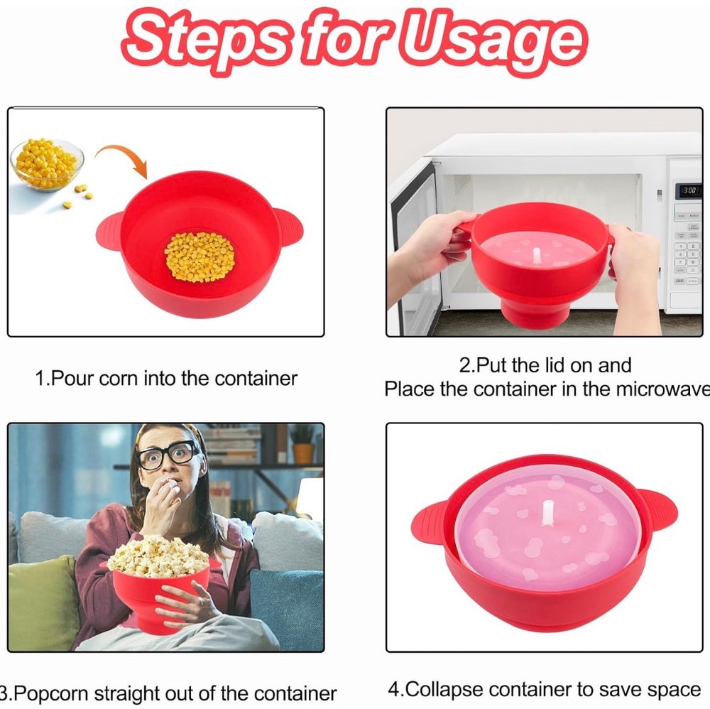 Fousenuk Mikrowellen-Popcornschale, Faltbar, BPA-frei, Rot