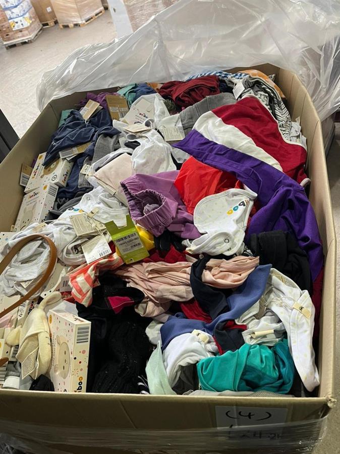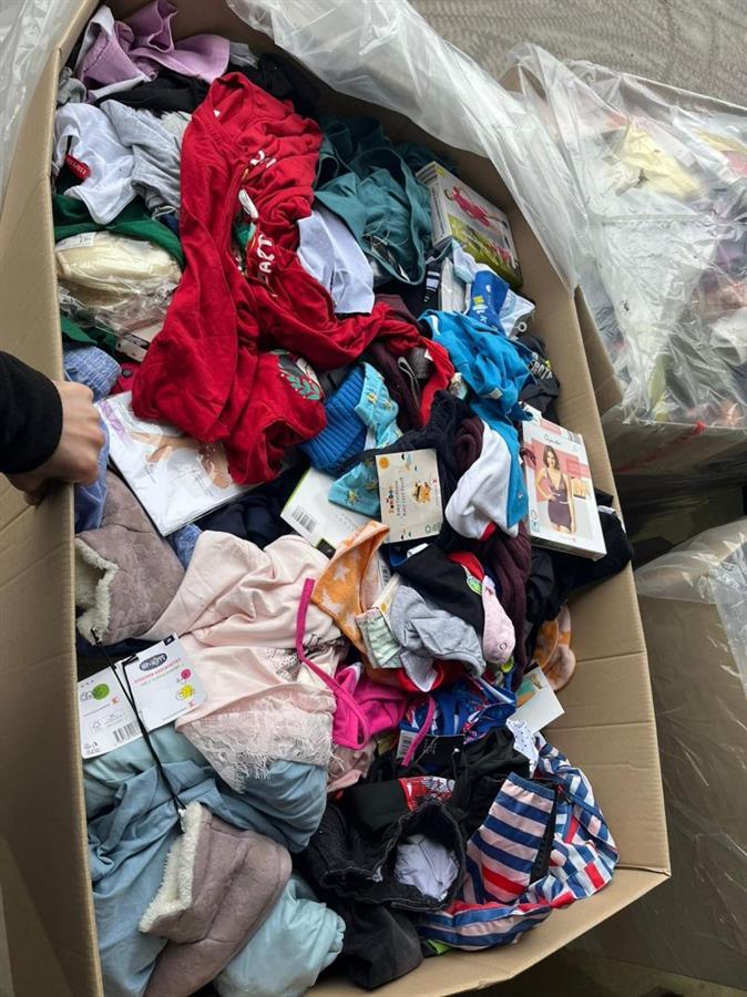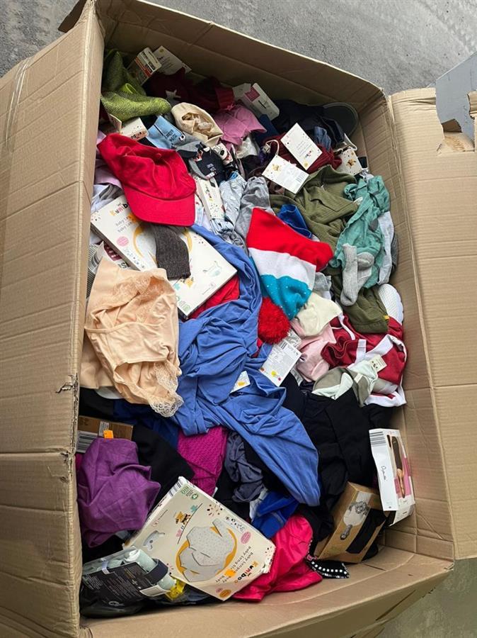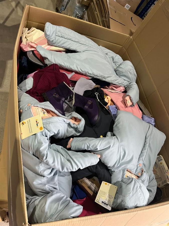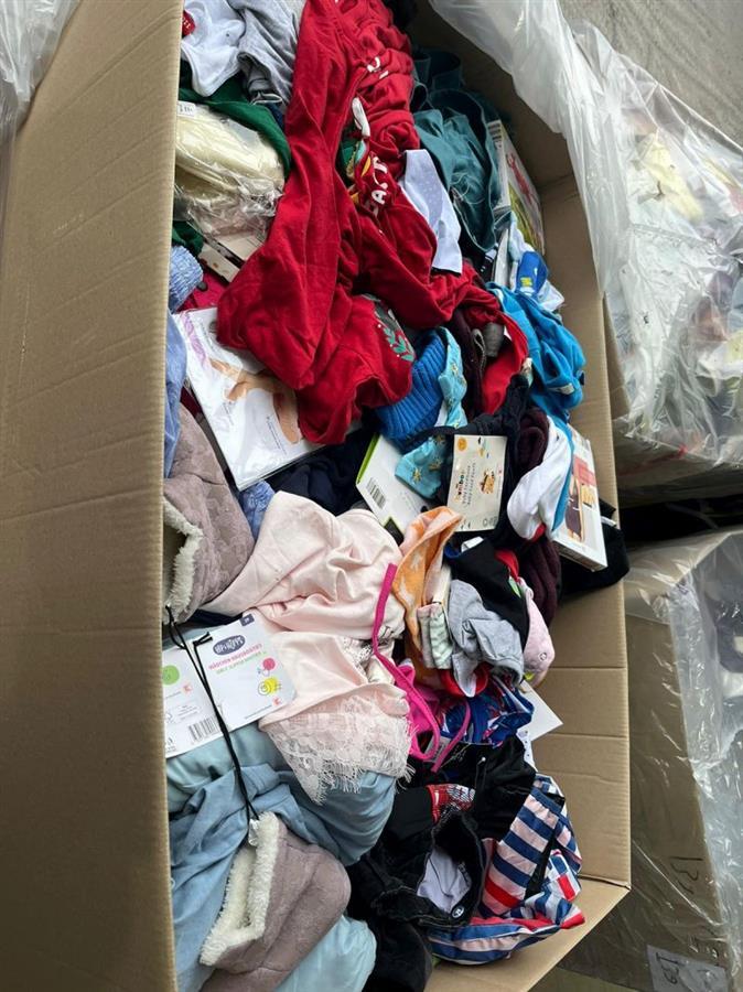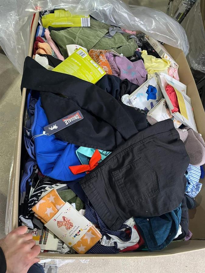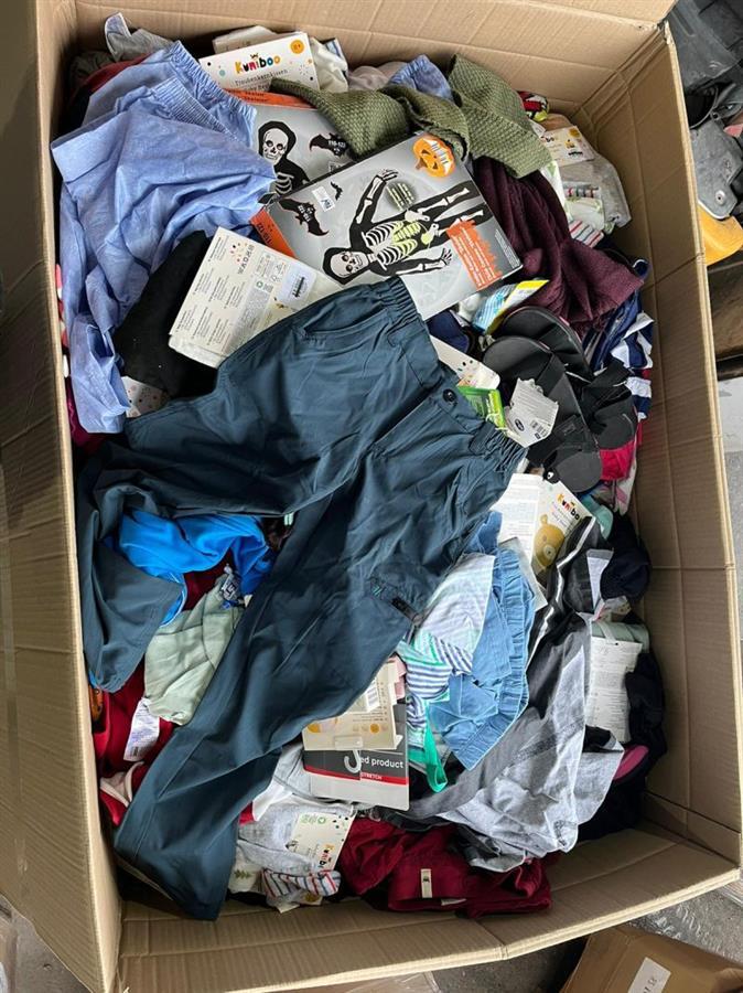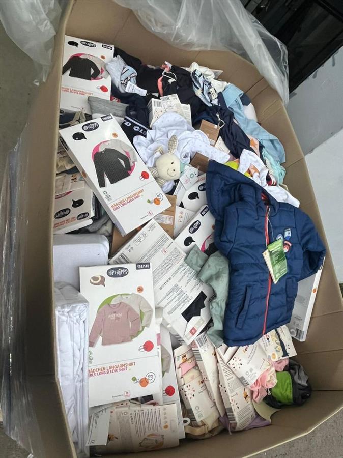 – Inhalt: Kleidung & Textilien, mit einem hohen Anteil an Kinderkleidung