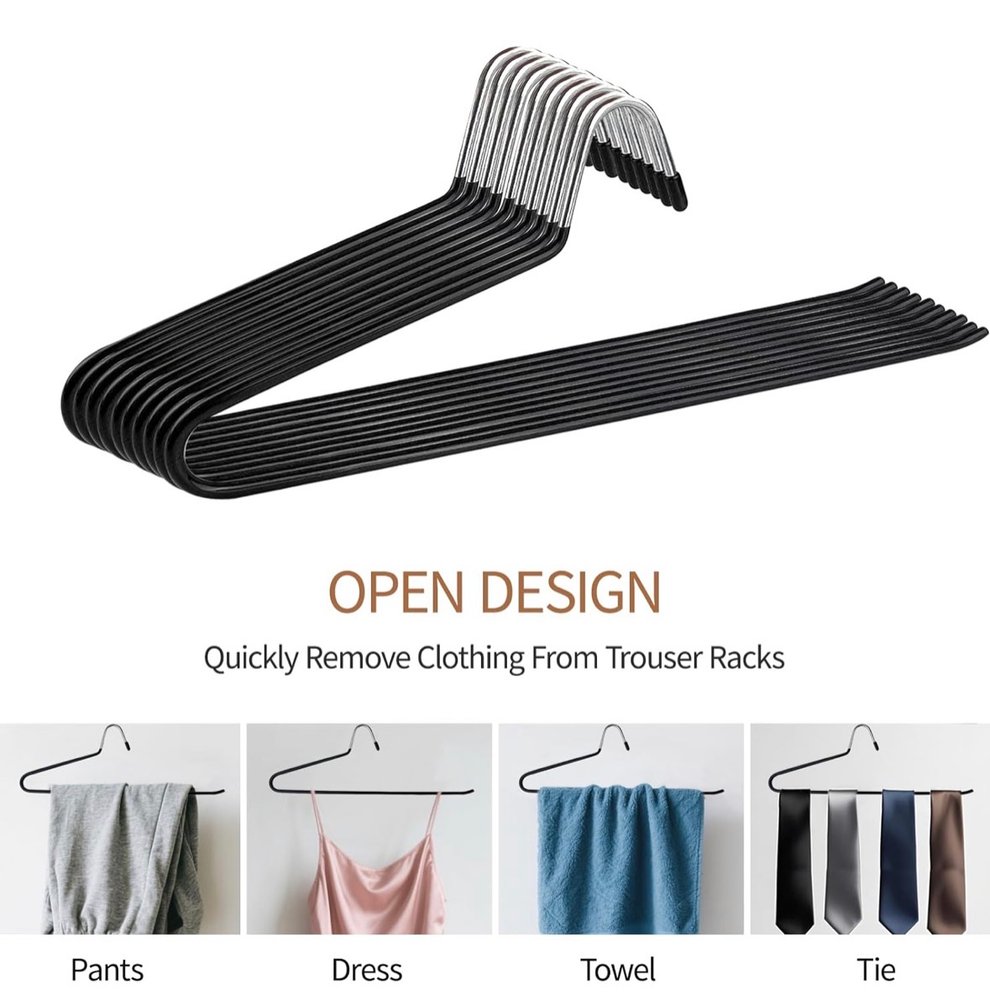 TERRARIDE Metall Hosenbügel, 12er Set, S-Form, Schwarz
