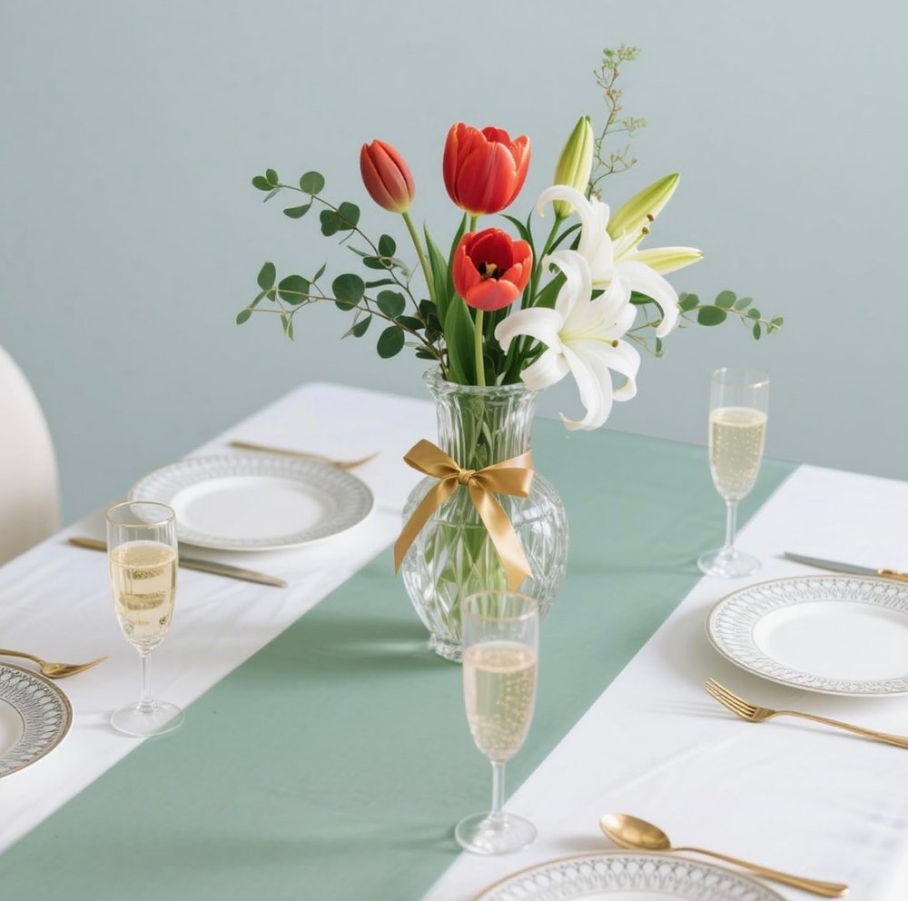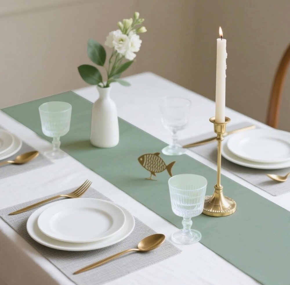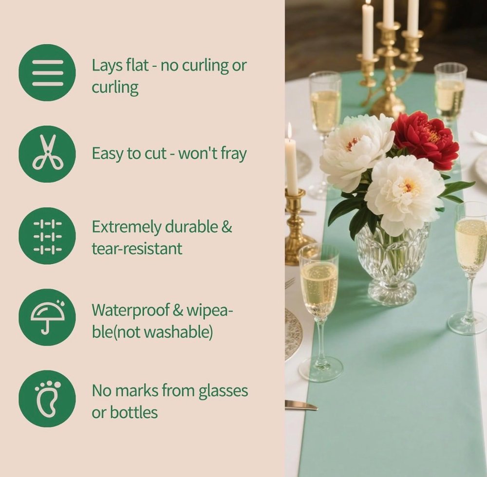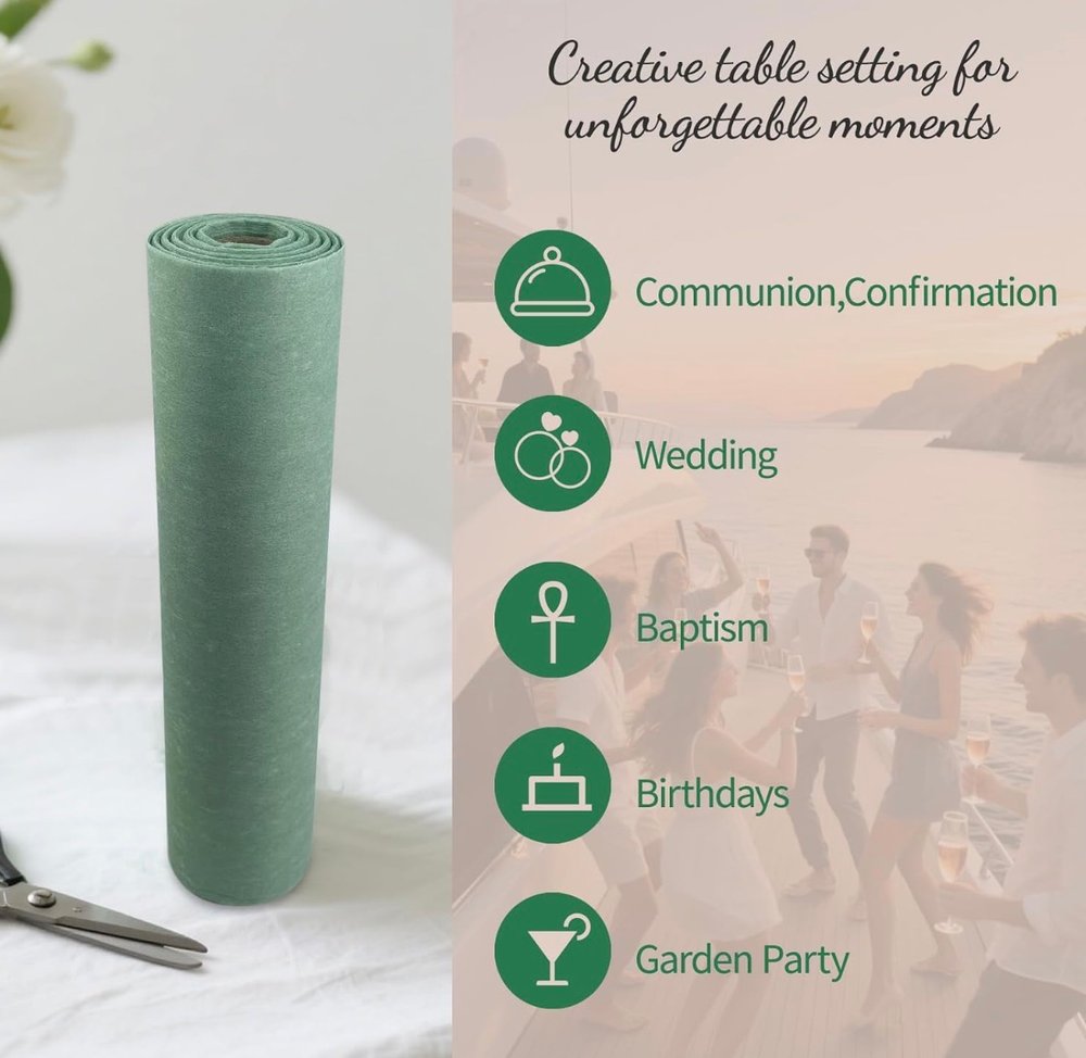 TERRARIDE Moderner Tischläufer, Eukalyptus Grün, 30cm x 25m